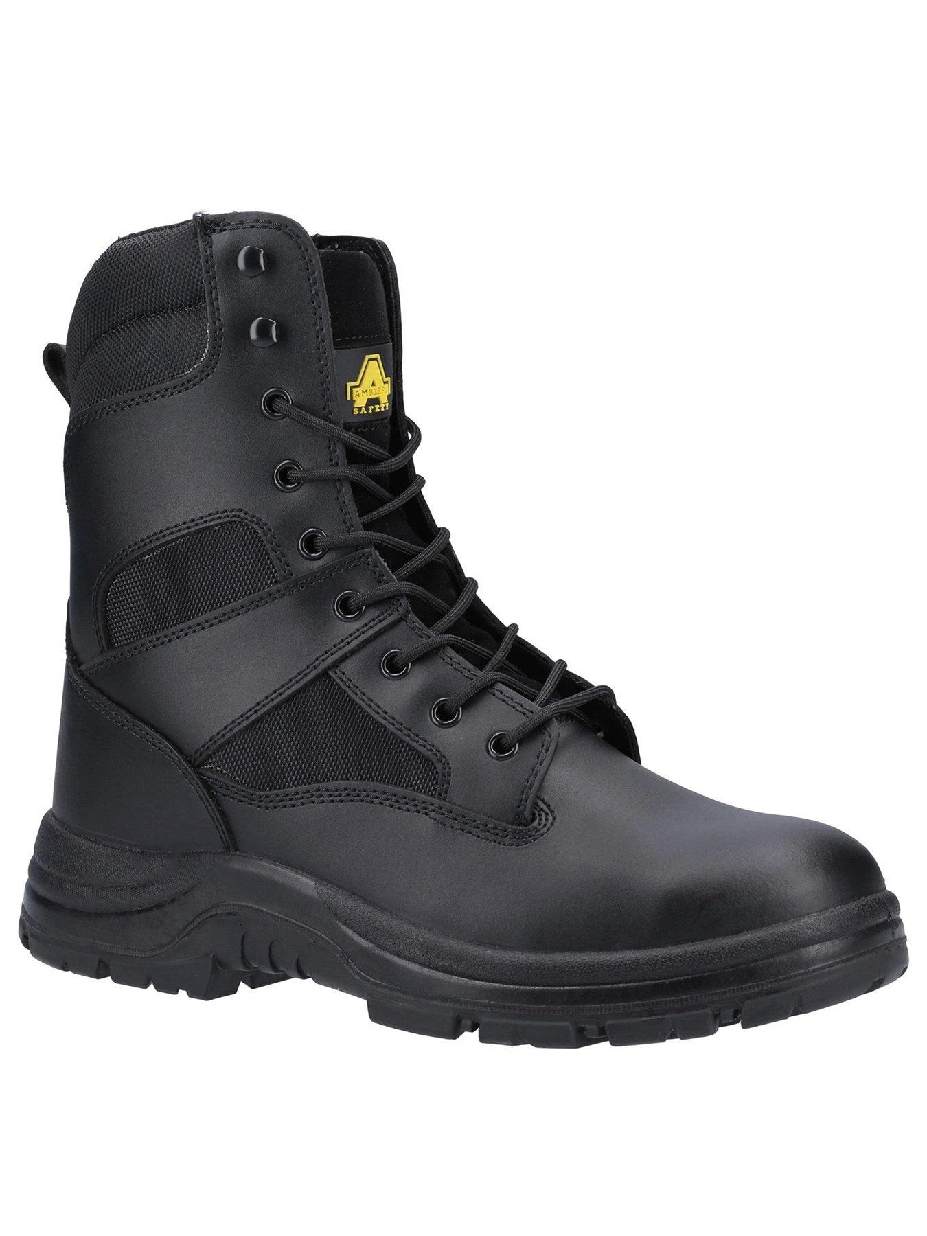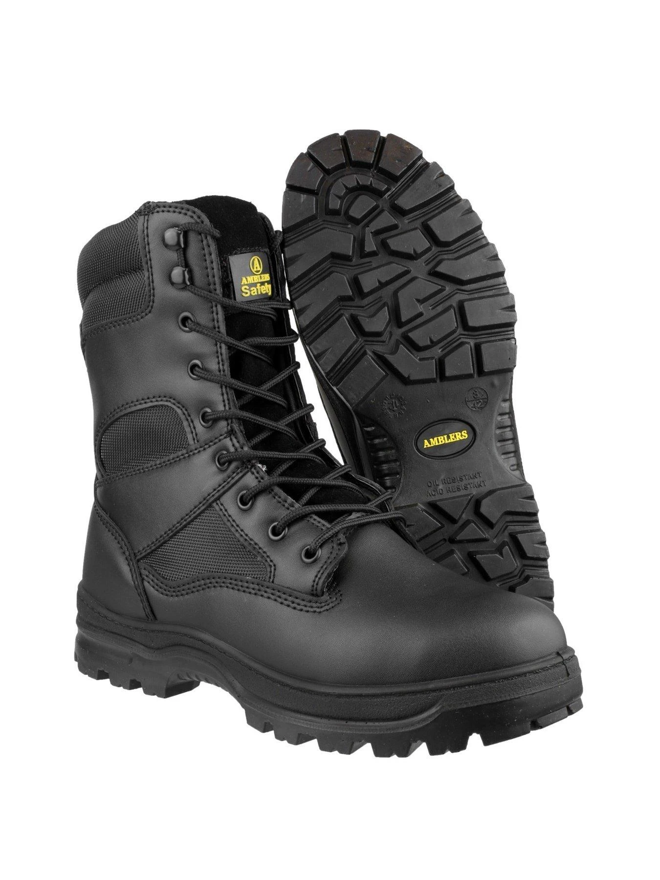 - Hi-top safety boot with steel toe cap and midsole protection