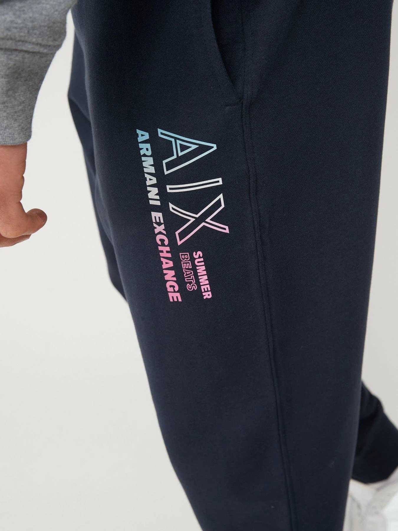 - Contrasting Armani Exchange branding printed to the leg
