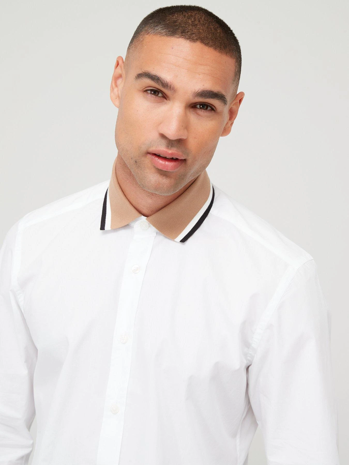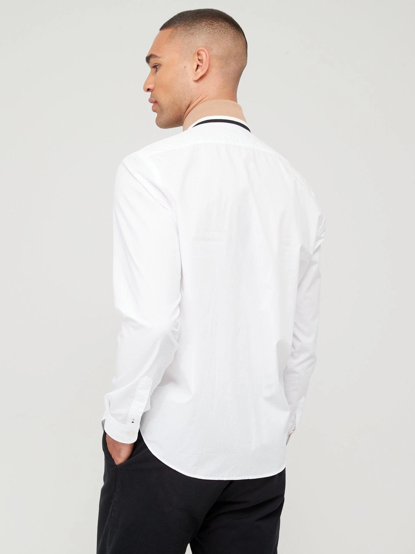 - Ribbed polo collar with contrast tipping Â