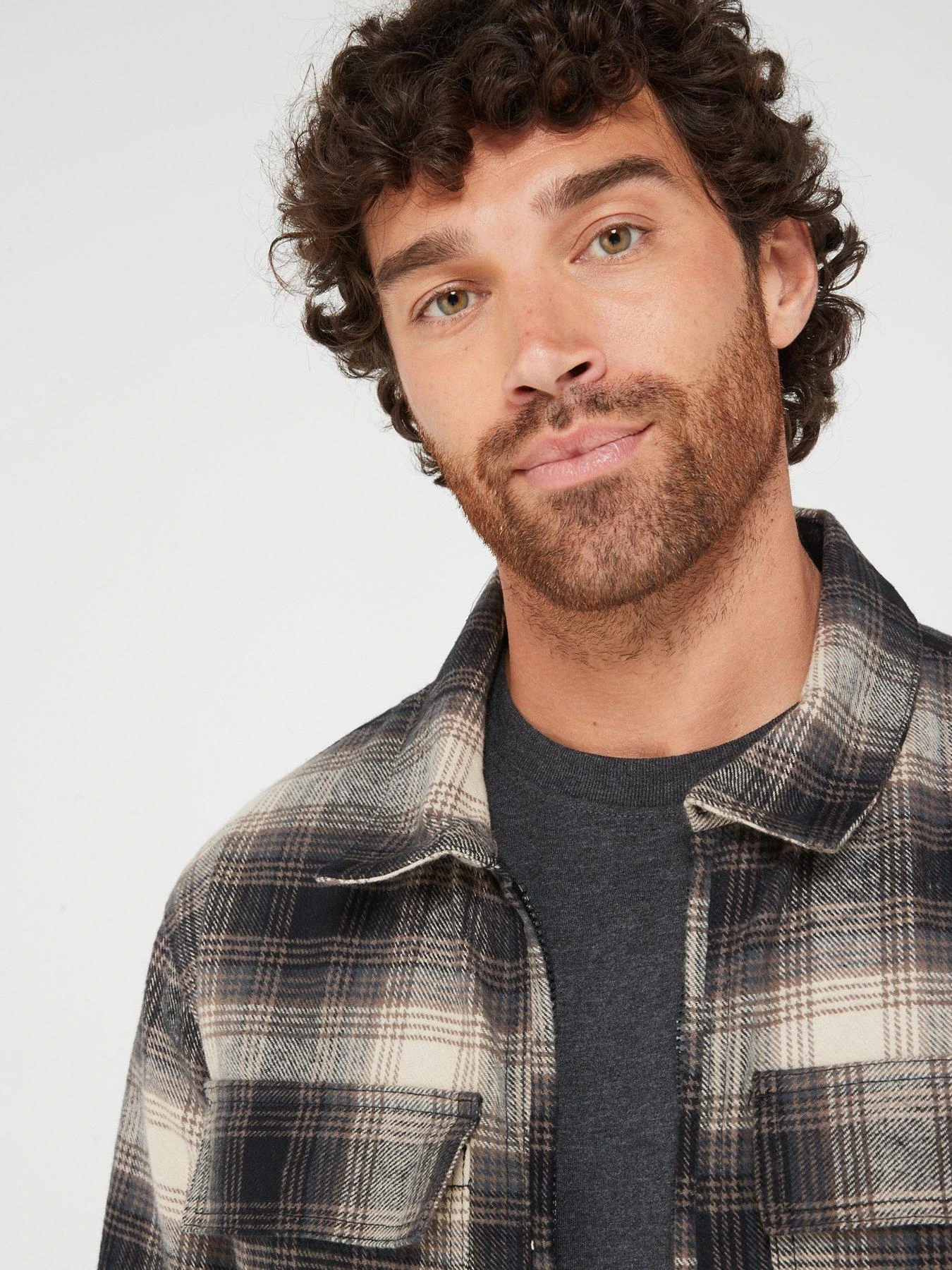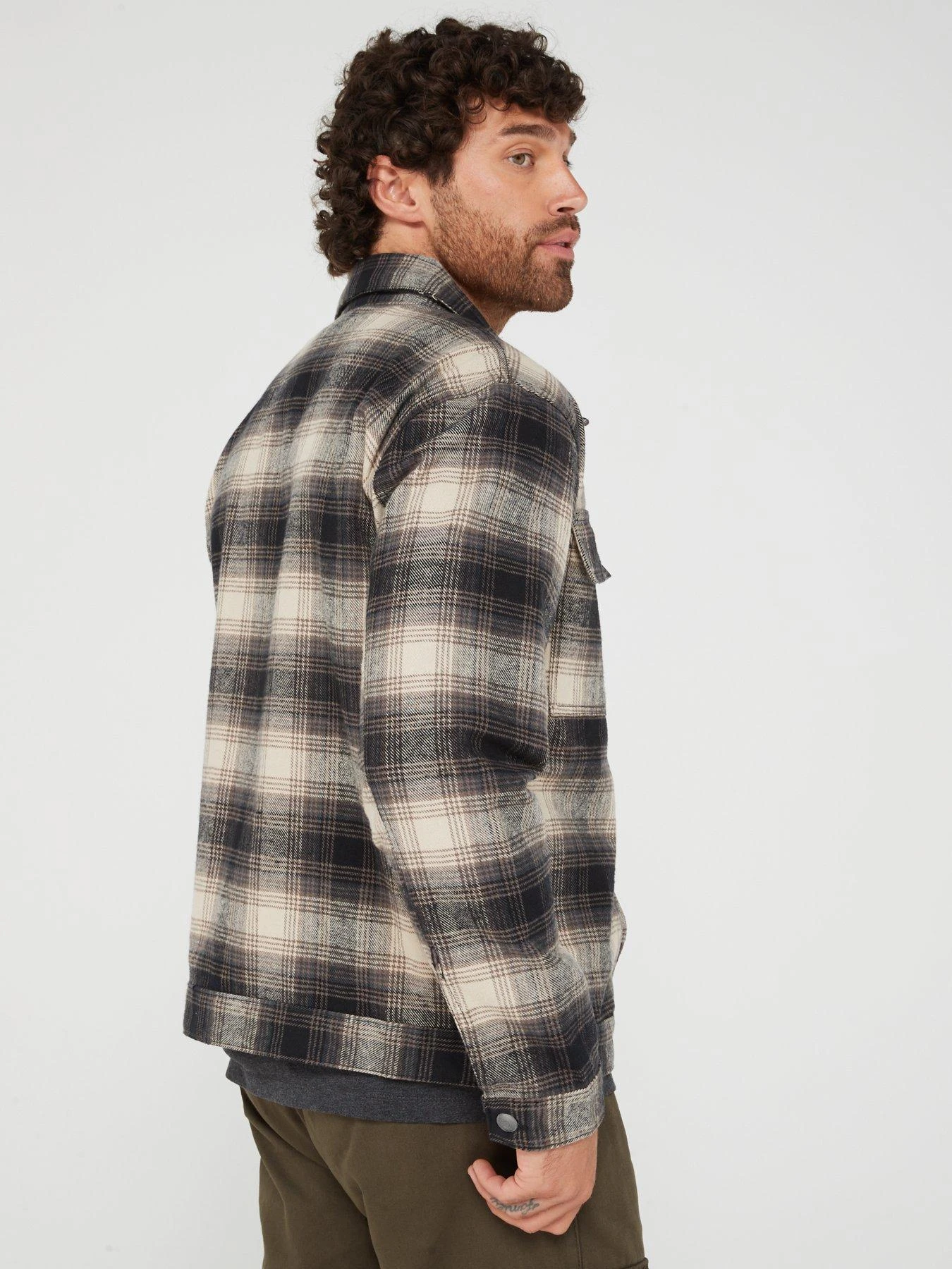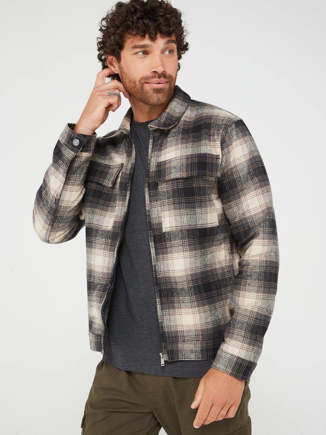 Brave Soul Check Zipped Overshirt – Black/white