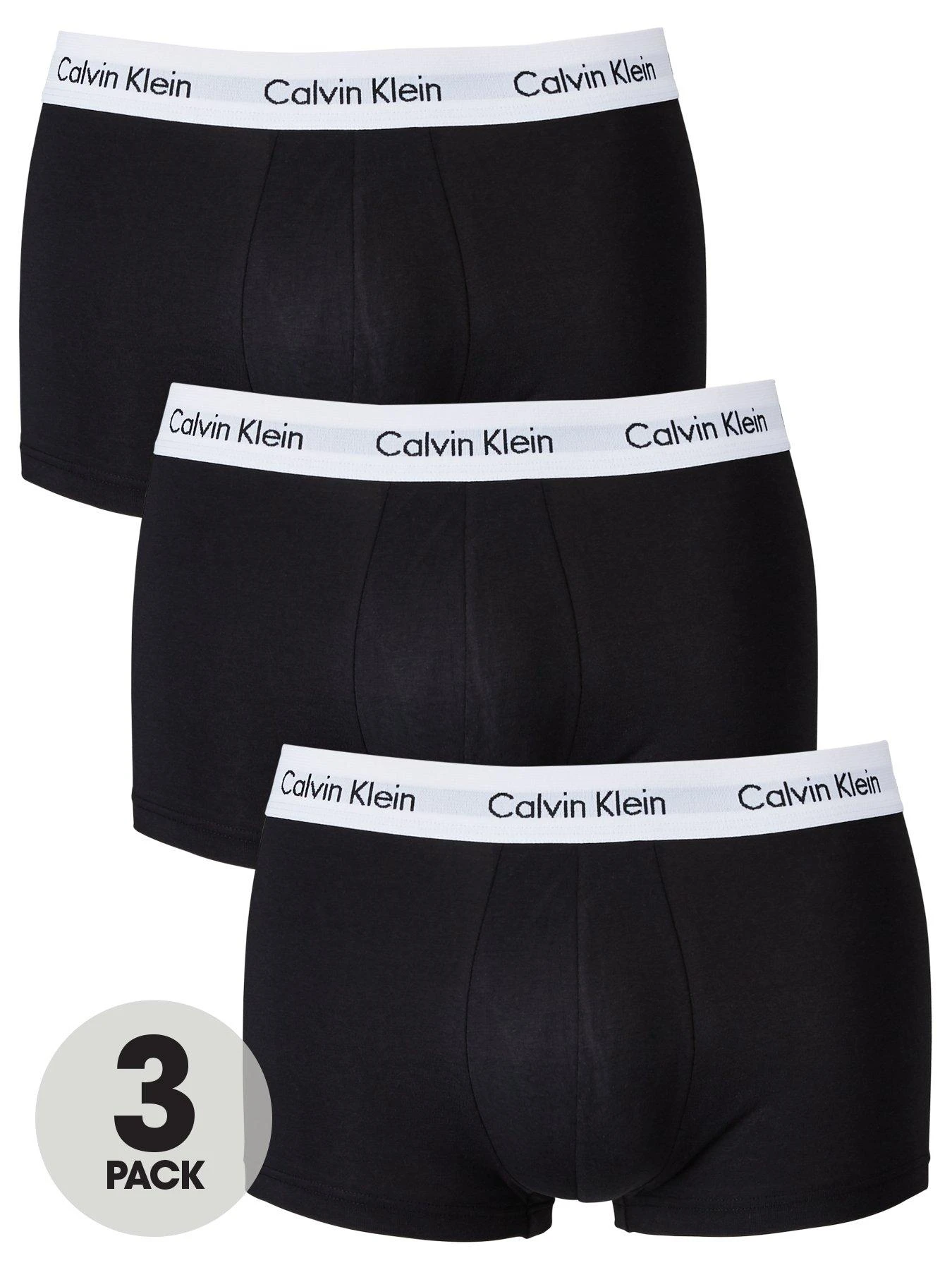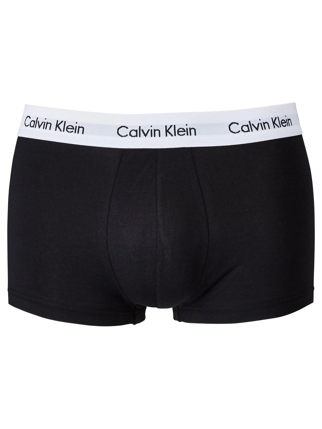 - Out with the old and in with the new as Calvin Klein deliver a three pack of low rise trunks for your underwear drawer. The three pairs of hipster-style pants all come in black, and spotlight the Calvin Klein logo around the elasticated waistband in black text against white.