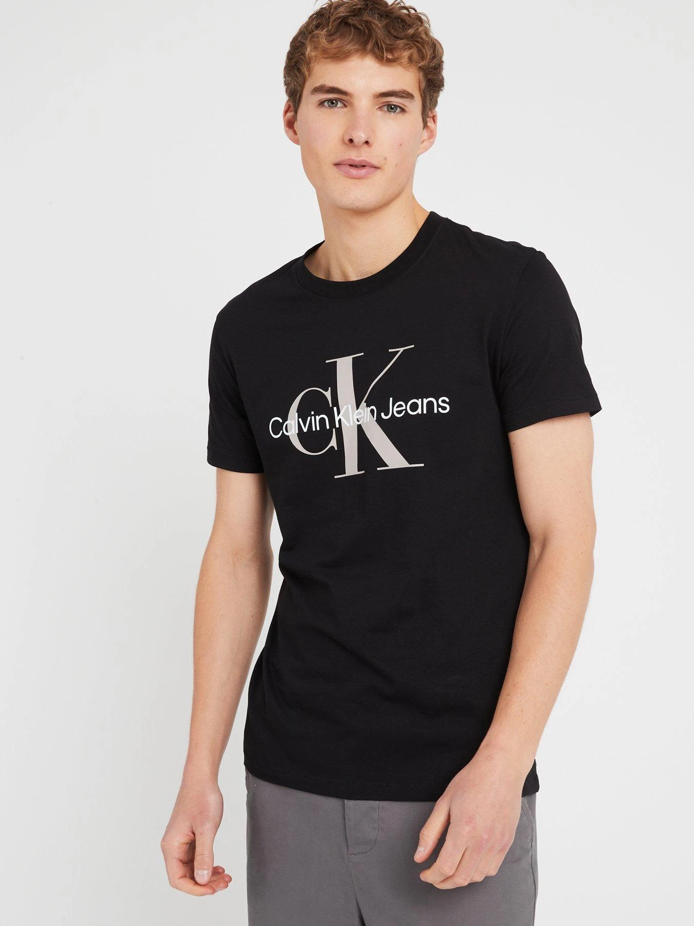 - Contrasting Calvin Klein Jeans to the chest