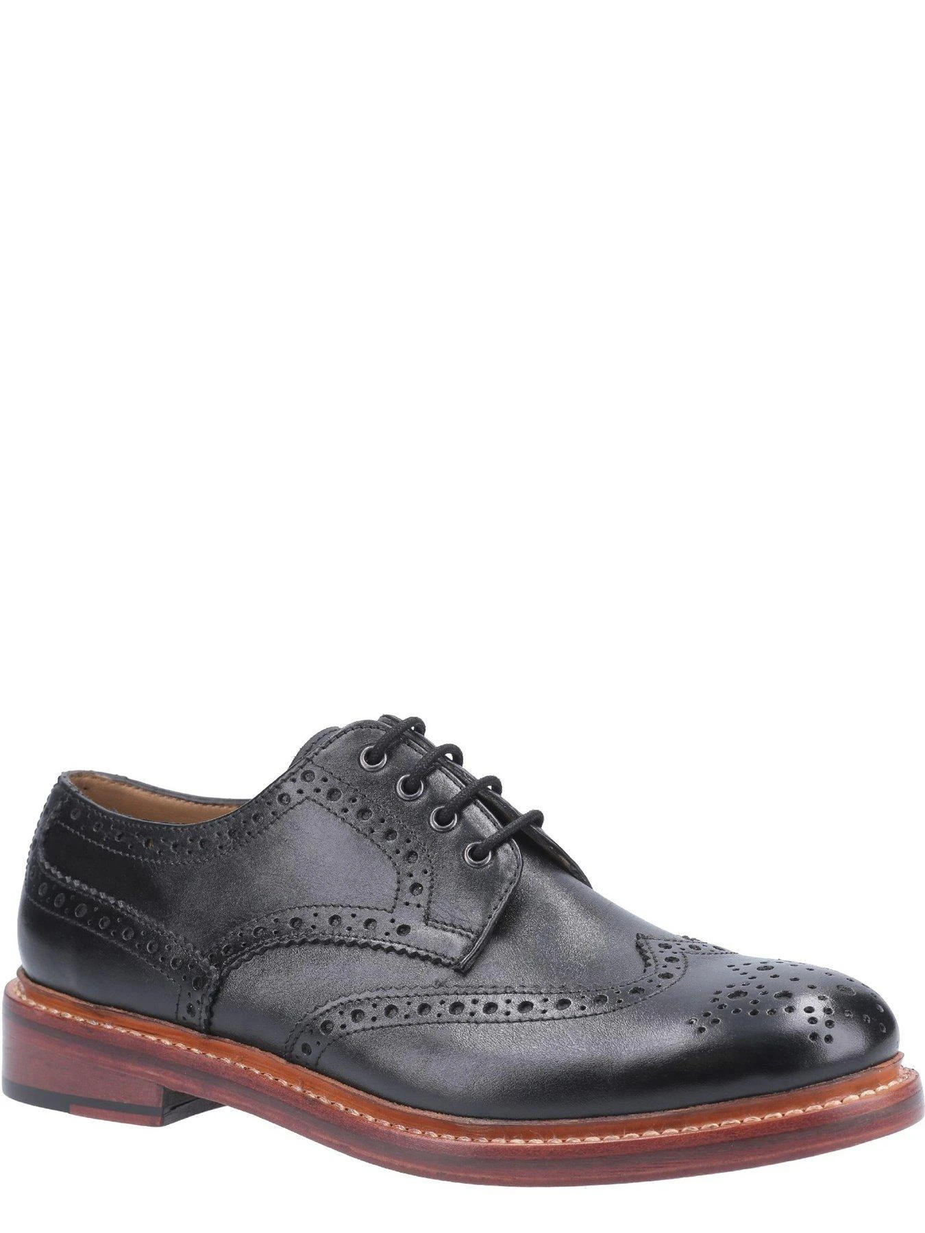 Mens Cotswold Quenington Leather shoe is beautifully styled with classic wing-tip Brogue detailing. Goodyear Welt Construction with classic Leather Sole. 4 eyelet lace fastening.