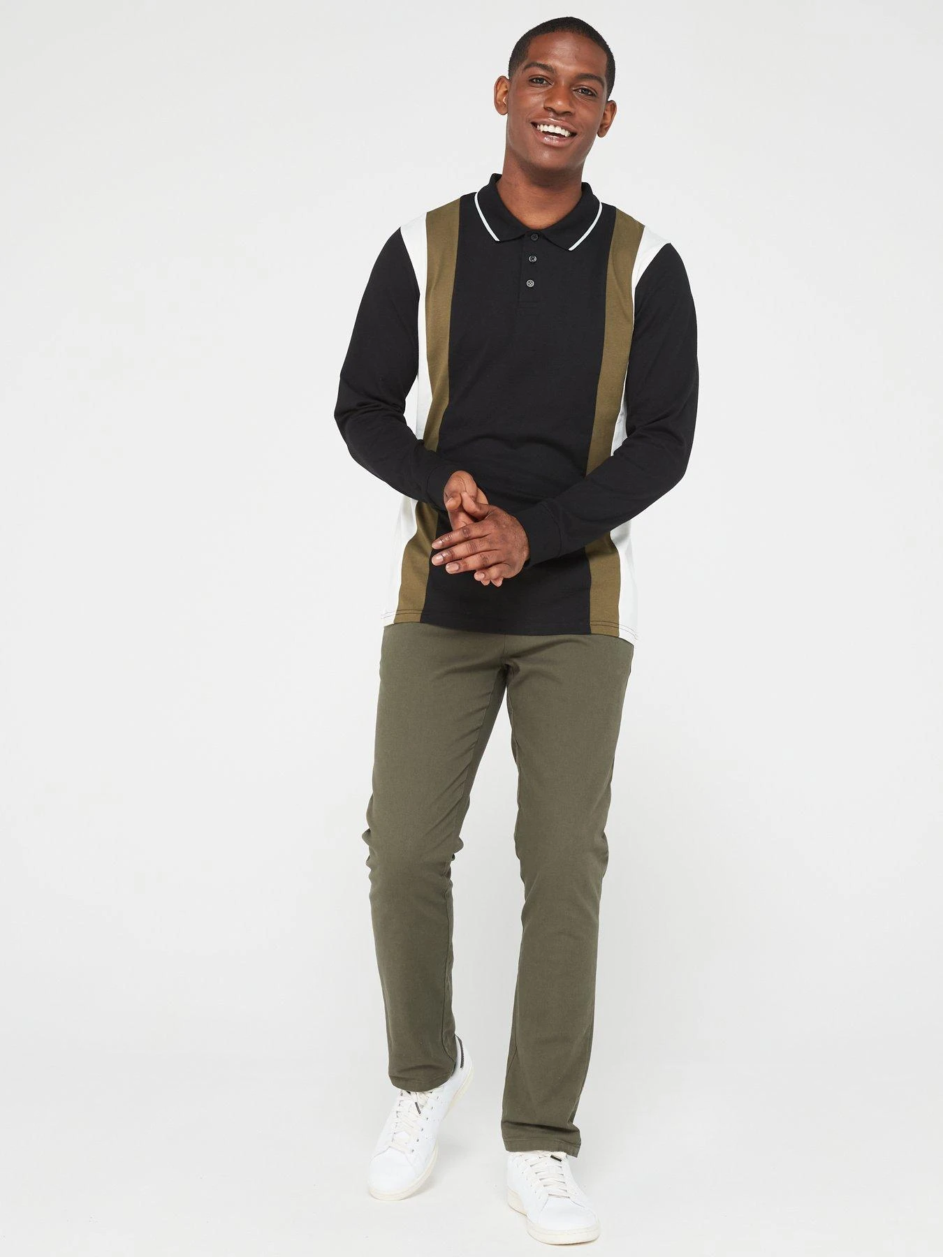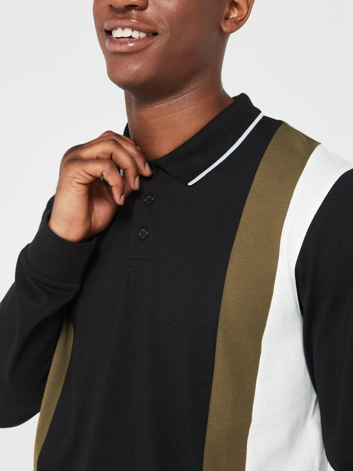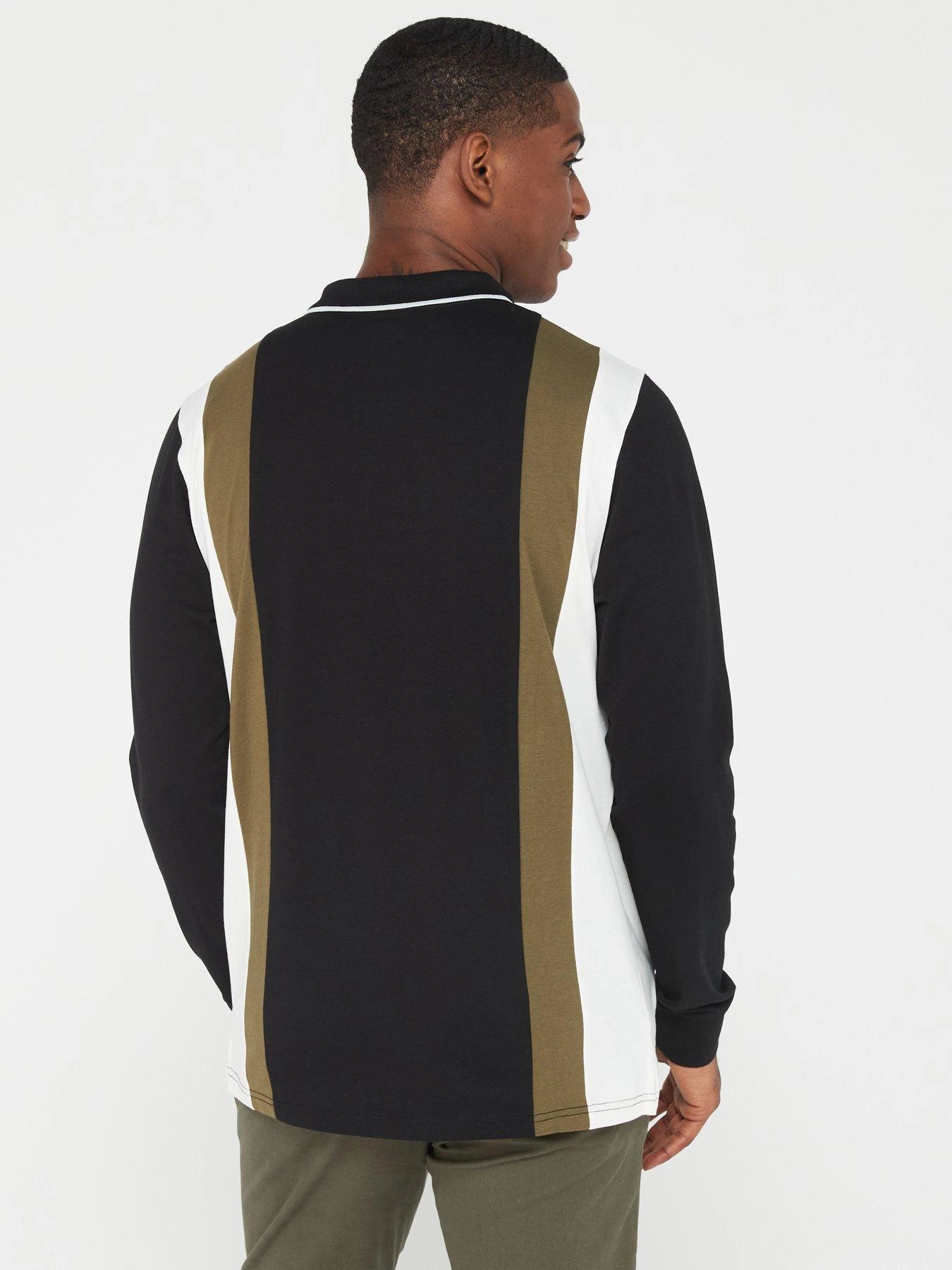 Everyday EVERYDAY LONG SLEEVE VERTICAL PANEL POLO – KHAKI/BLACK