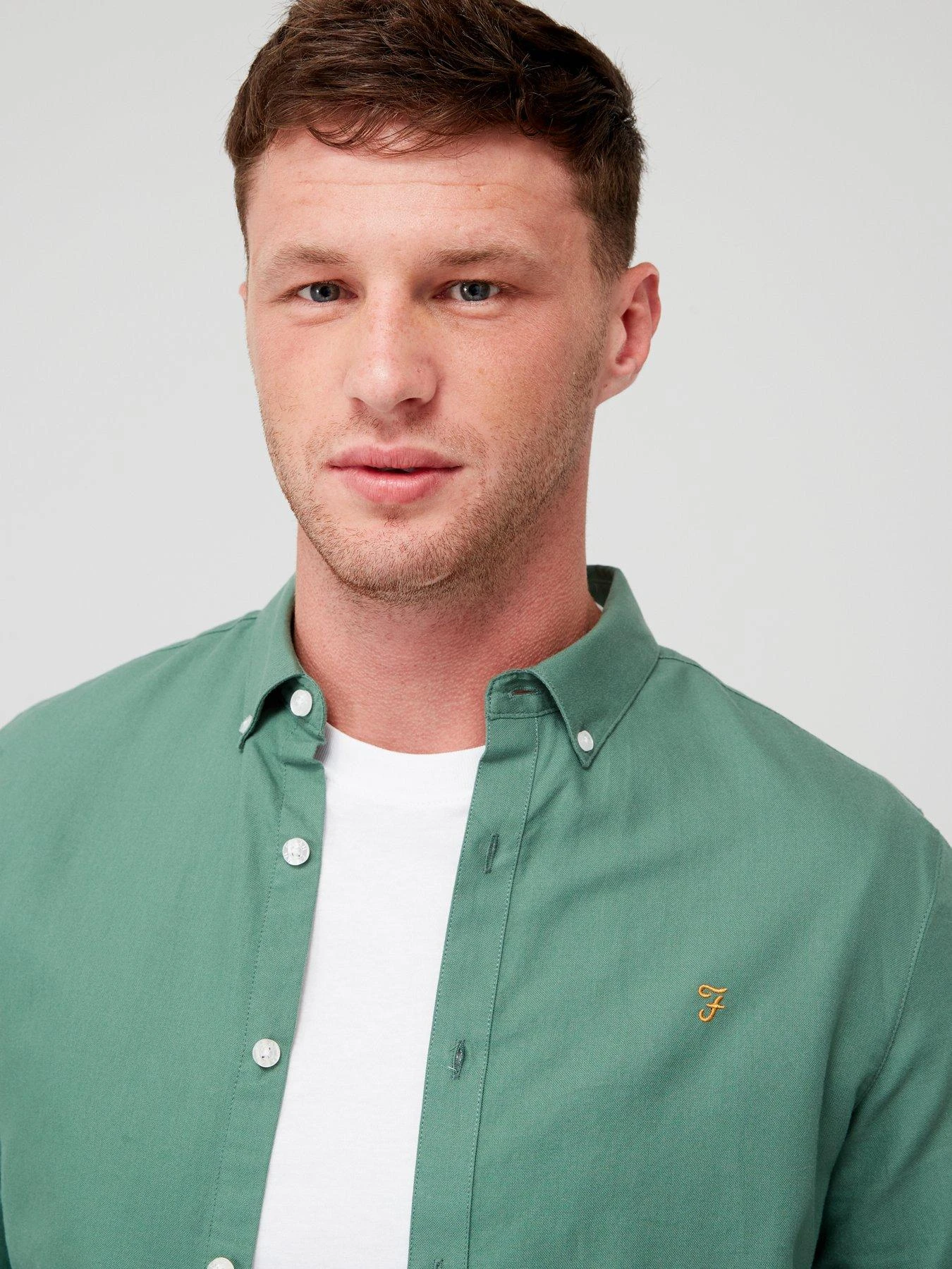 - Embroidered Farah logo to the chest