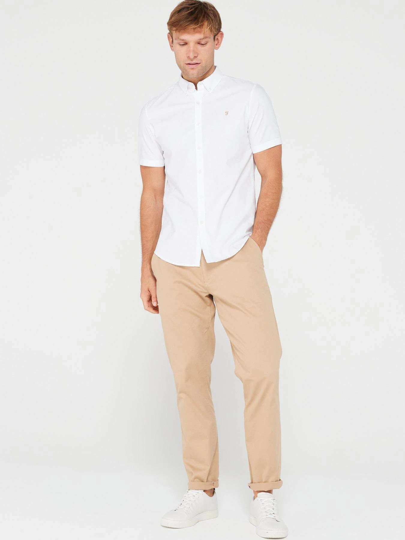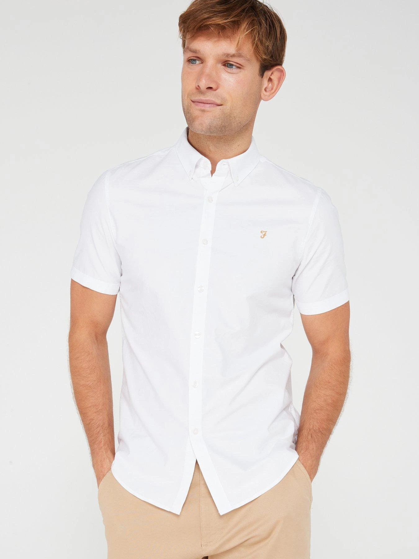 Farah Brewer Short Sleeve Slim Fit Oxford Shirt – White
