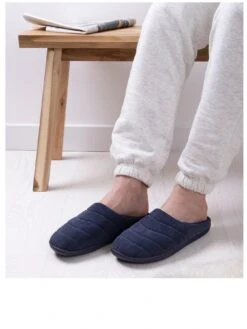 Totes Isotoner Isotoner Textured Cord Stitch Detail Mule Slippers – Navy