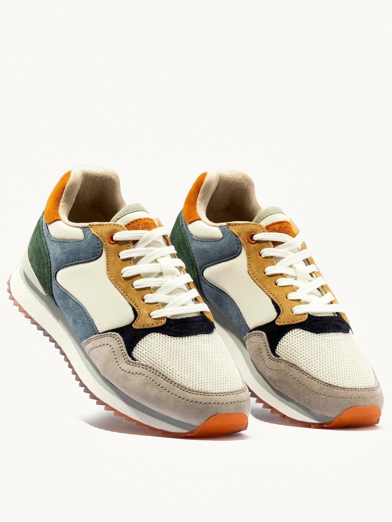 - Side pieces in suede leather and textile