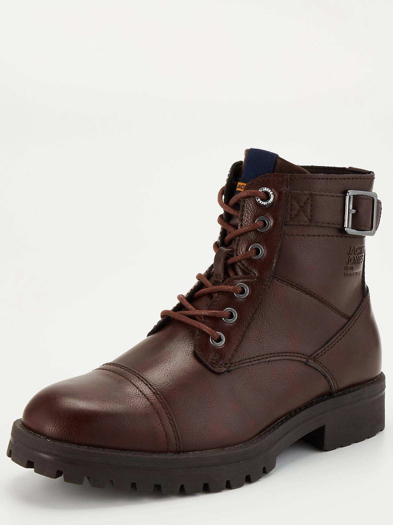 Jack & Jones Lace Up Buckle Boots – Dark Brown