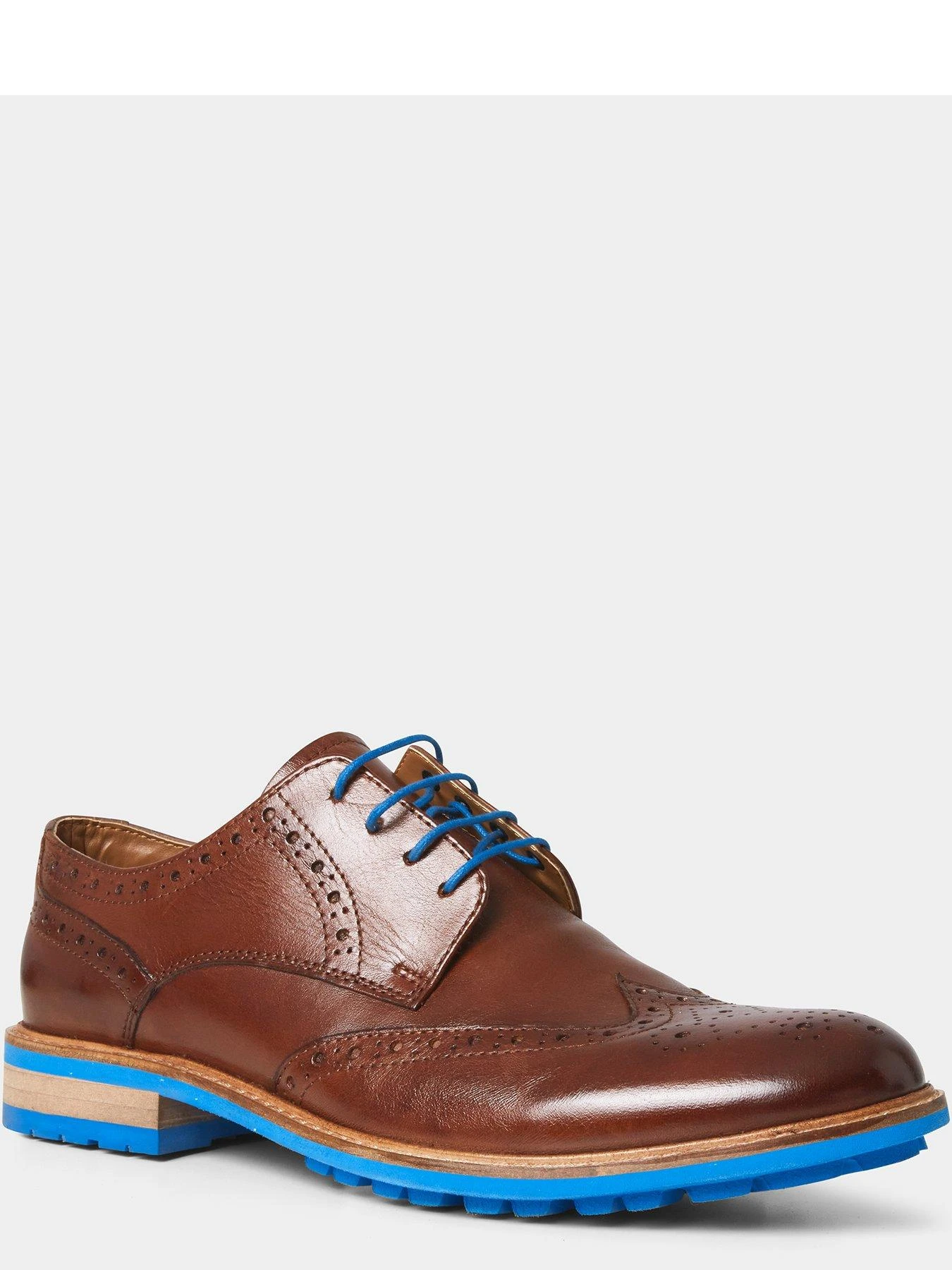 Designed for all you true gents, these leather brogues will bring sophistication to your style. Beautifully hand-finished with a wood-stacked heel and stitching on the sole, this premium pair will elevate any outfit. Finished in a versatile tan colour, it’s the bold pops of blue that’ll really help you stand out from the crowd.