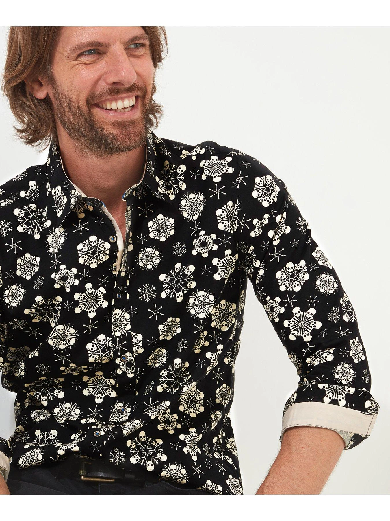 Do Christmas the Joe Browns way in this slick cotton shirt. There’s no way you can top its cool snowflake print – it’s made up of edgy skulls to create a totally unique design. Festive with a sharp finish, it’s great for those who like to make an impact.