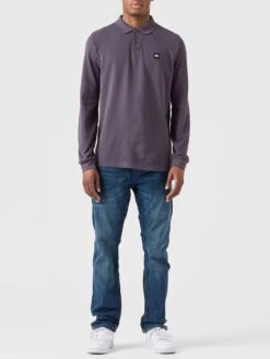 Weekend Offender Dice Long Sleeve Badge Polo Shirt – Dark Grey
