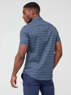 Armani Exchange All-Over Print Stretch Short Sleeve Shirt – Navy