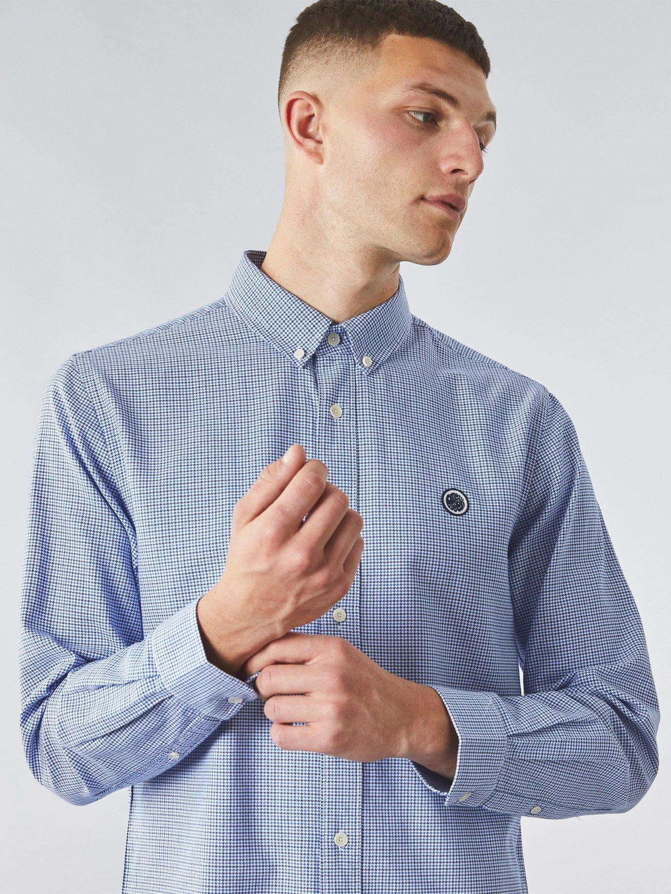 Pretty Green Pretty Green Houndstooth Shirt – Blue