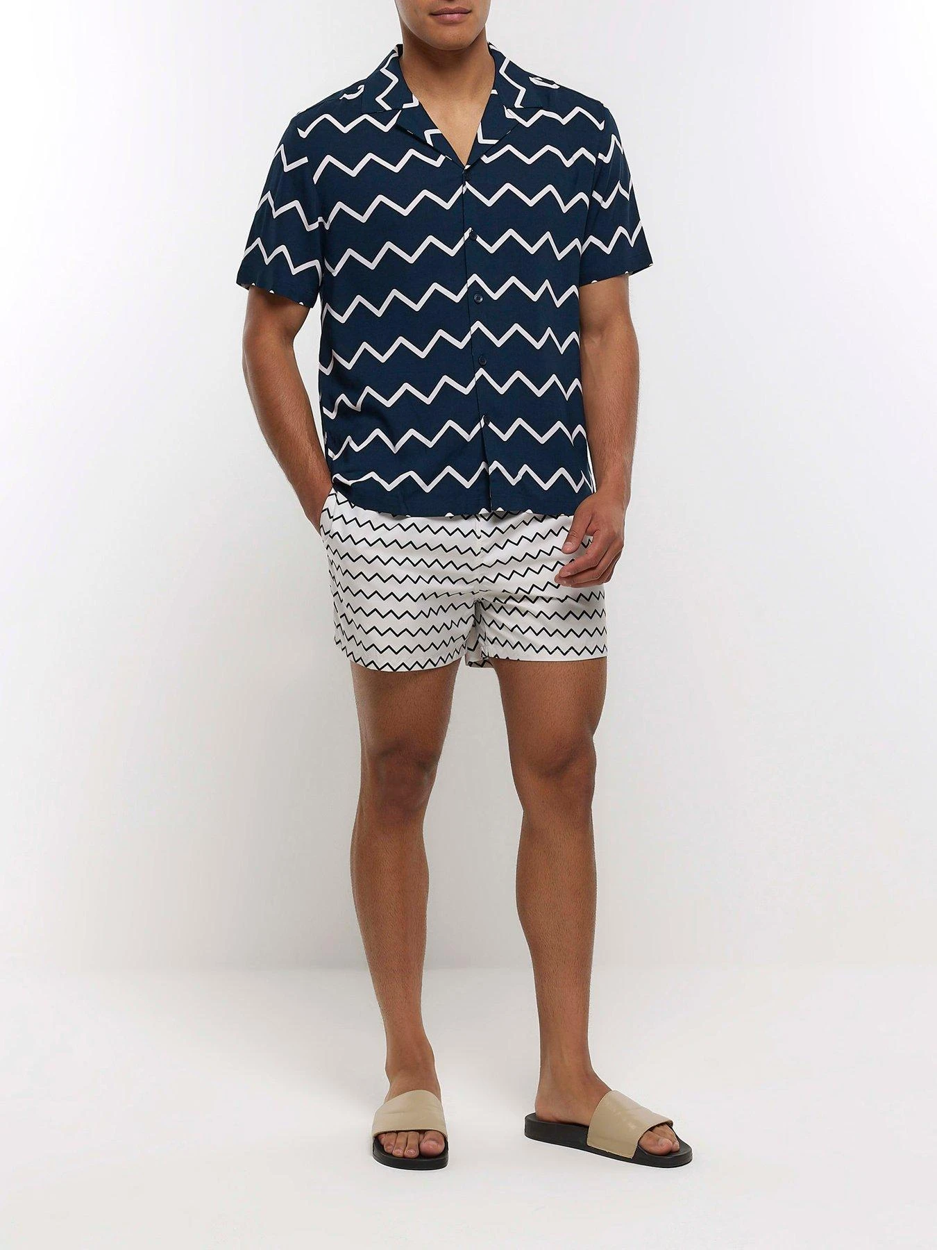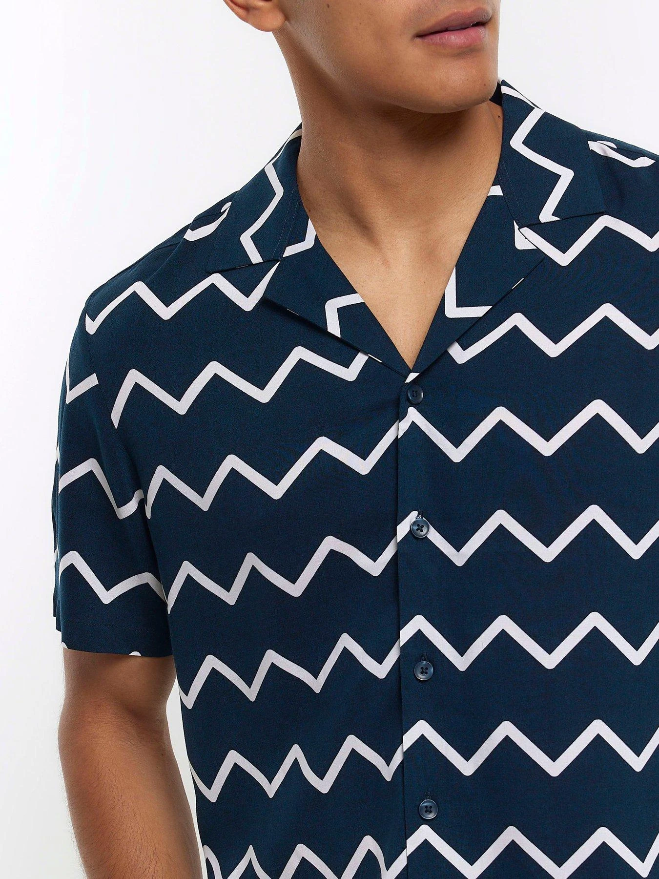 River Island Zip Zag Print Revere Shirt