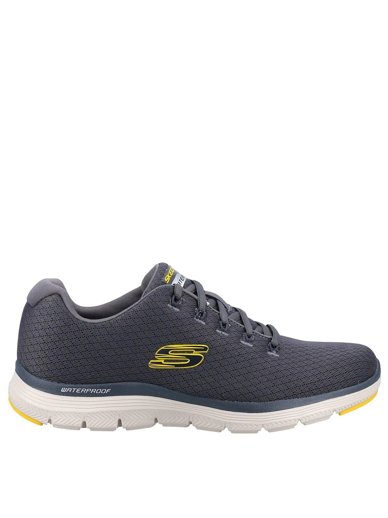 Step in sleek athletic comfort wearing Skechers Flex Advantage 4.0. This waterproof lace-up features a mesh upper and cushioned Air-Cooled Memory Foam comfort insole.