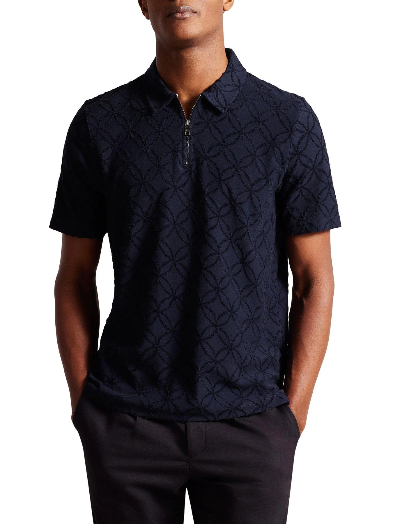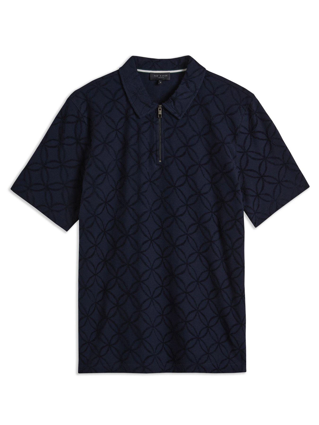 Ted Baker Maroc Regular Zip Jacquard Polo Shirt – Navy