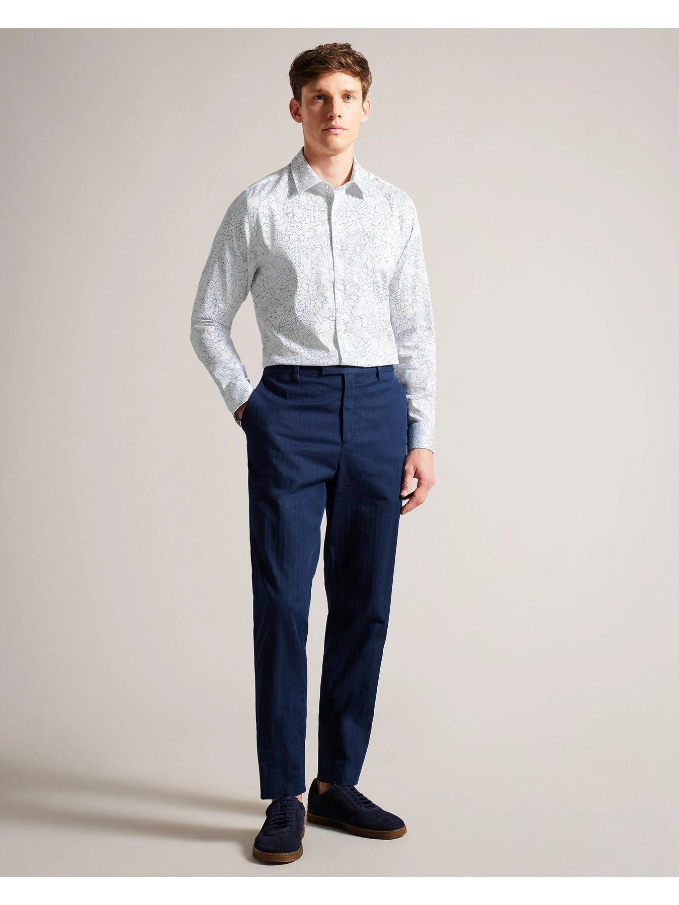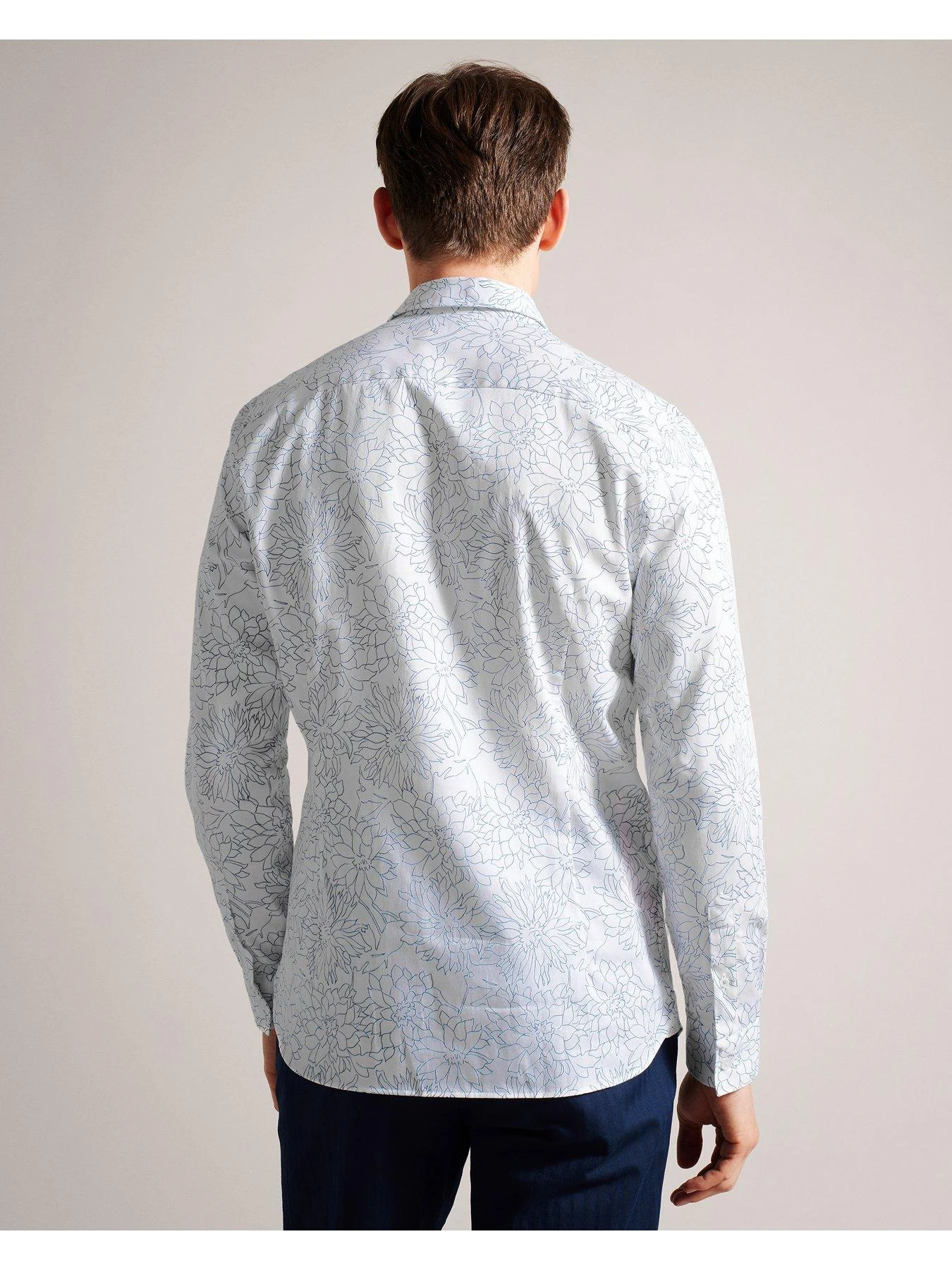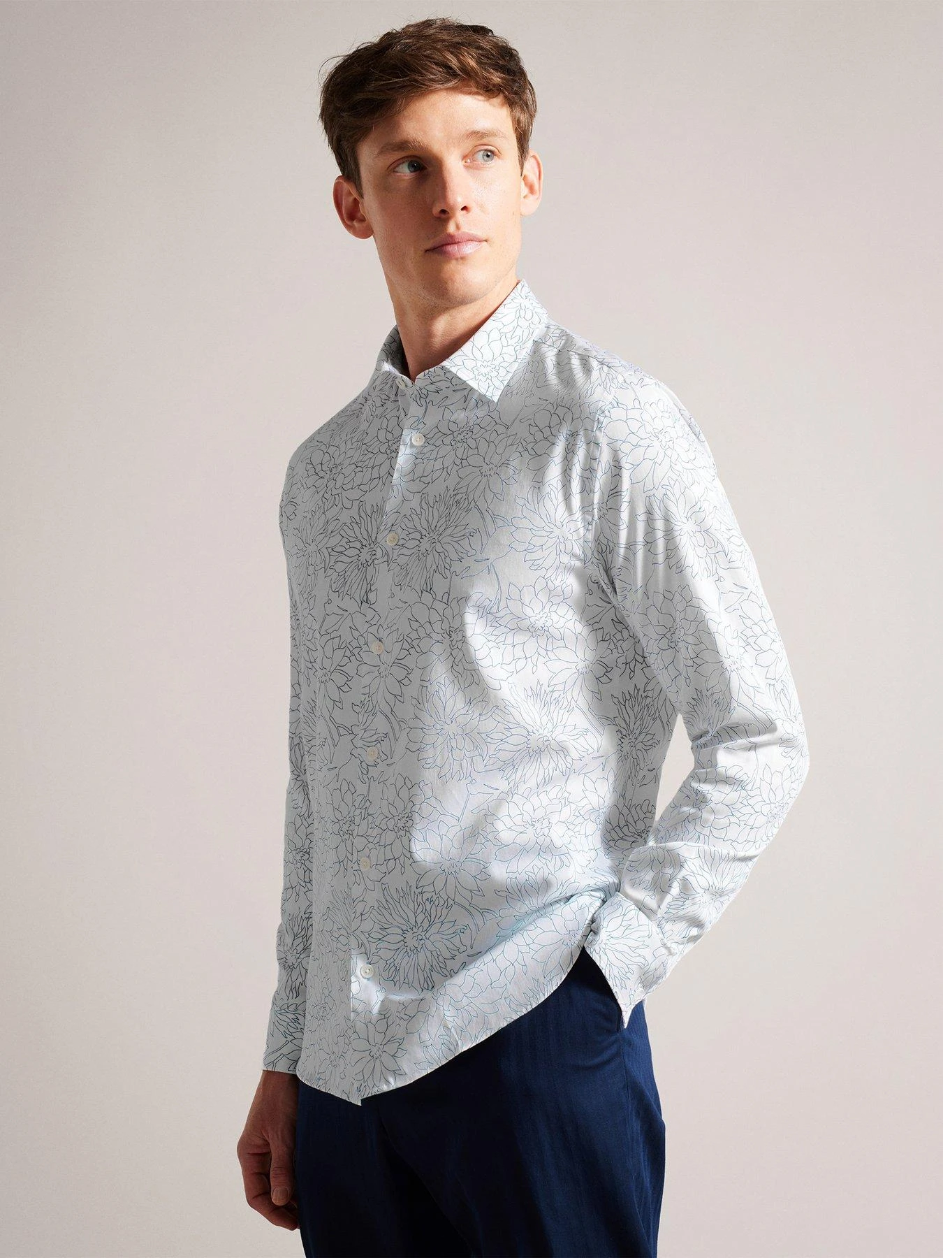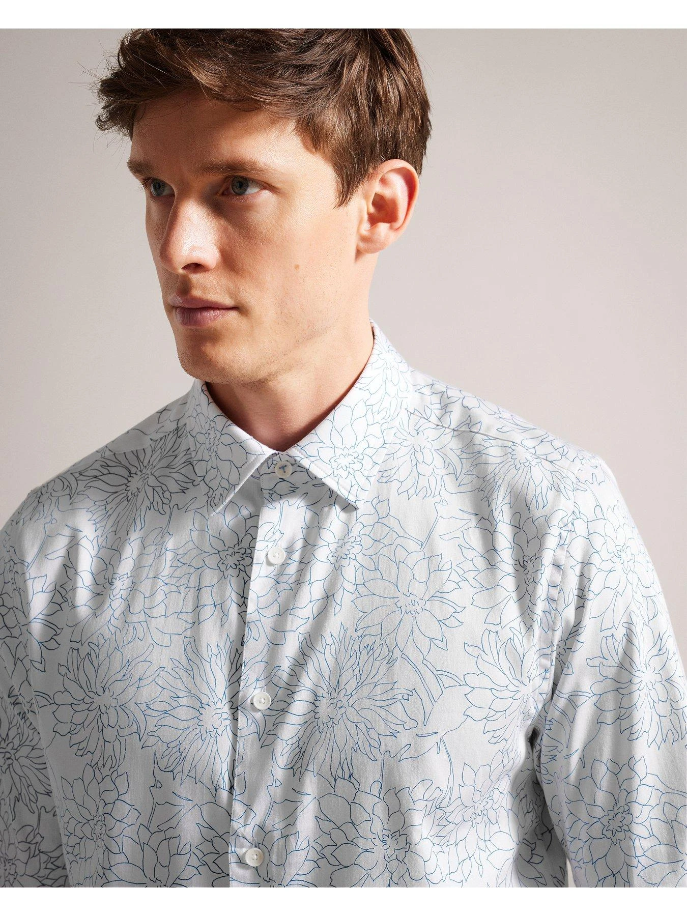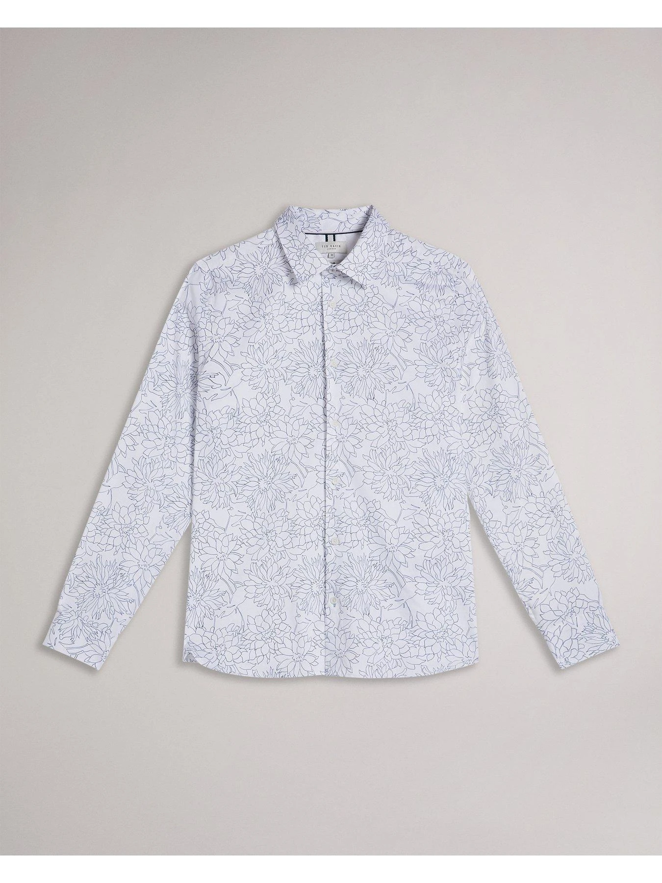 Ted Baker Neale Dense Floral Print Long Sleeve Shirt – White