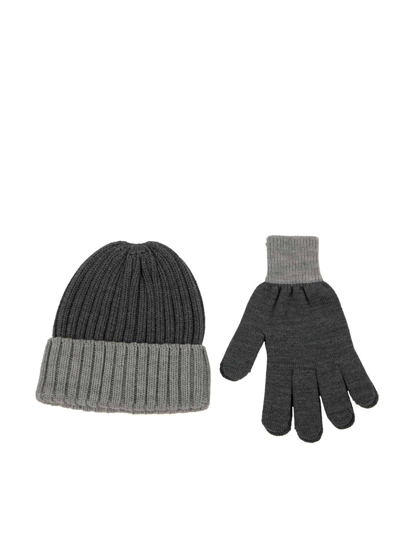 Beating winter’s chills in style! Classic knitted beanie style hat in a grey marl matched with warm gloves for a perfect winter boost. Chunky textured rib knit. One size fits most. Beautifully packaged for the perfect gift.