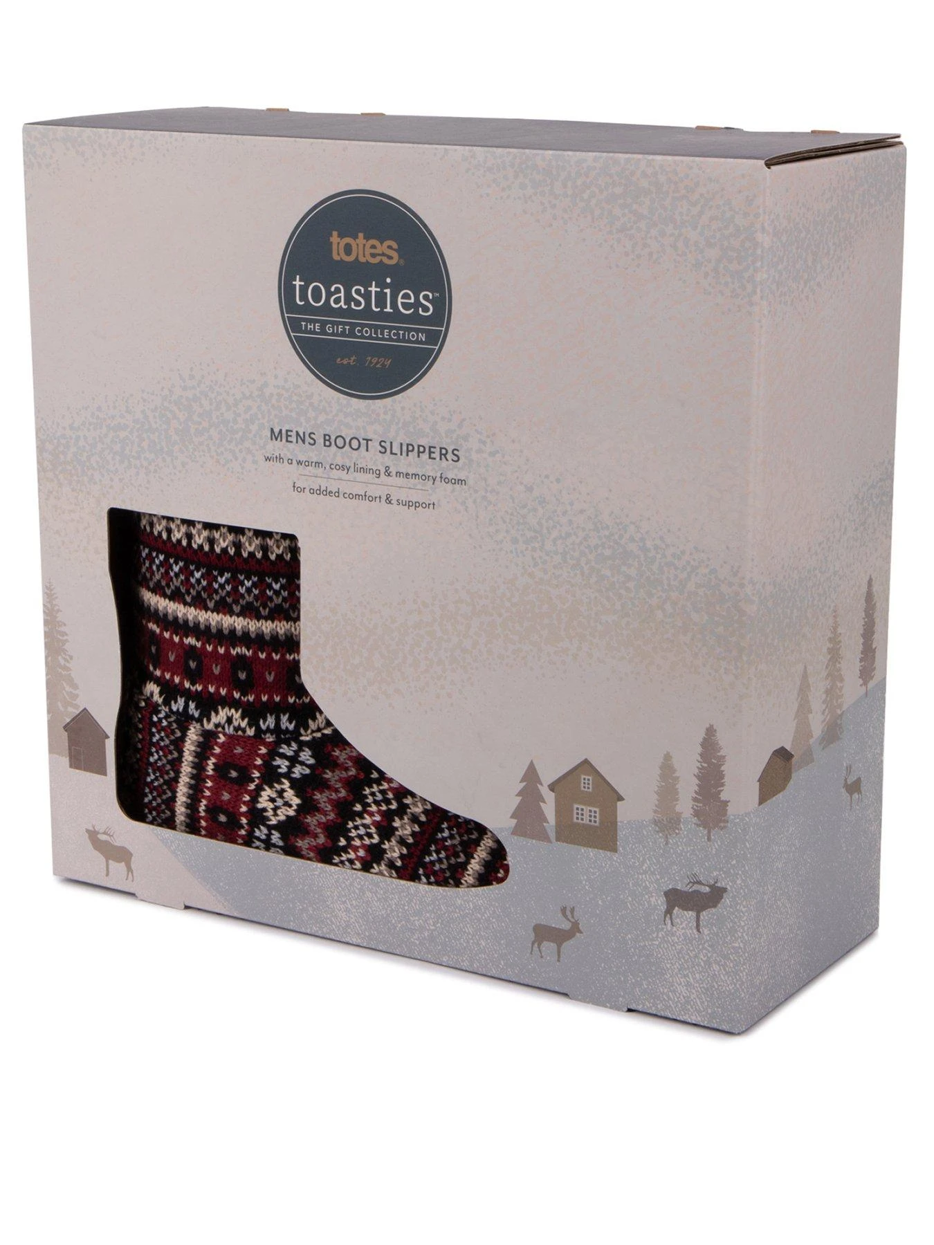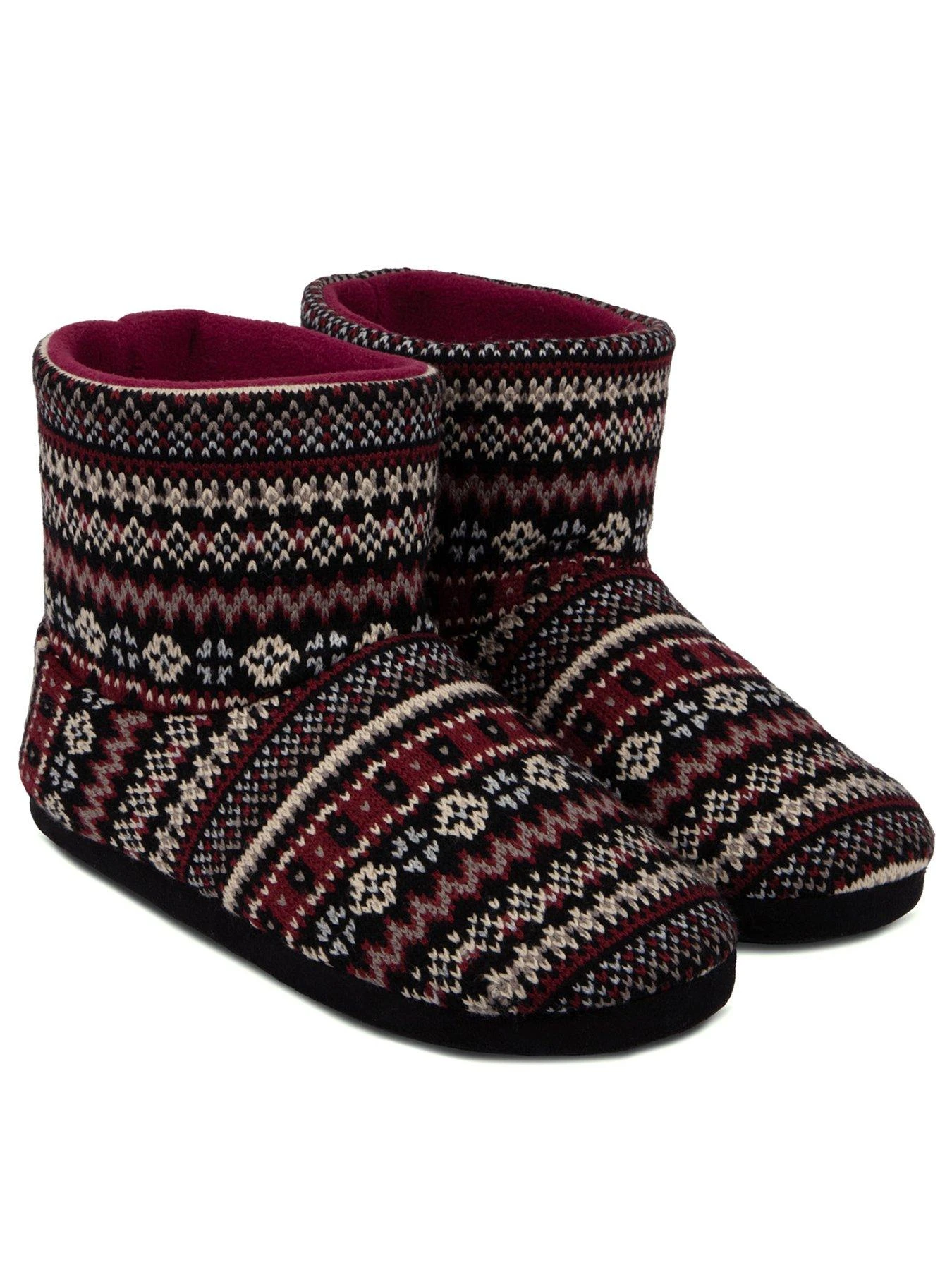 Fun and festive Fair Isle Bootie style slippers to keep chilly feet warm and cosy throughout the winter. We’ve added a cosy fleece lining to a classic Fair Isle design in warm berry tones for the perfect winter warmer. Rib Knit Texture. Warm and cosy fleece lining. Memory foam for comfort. Durable sole.