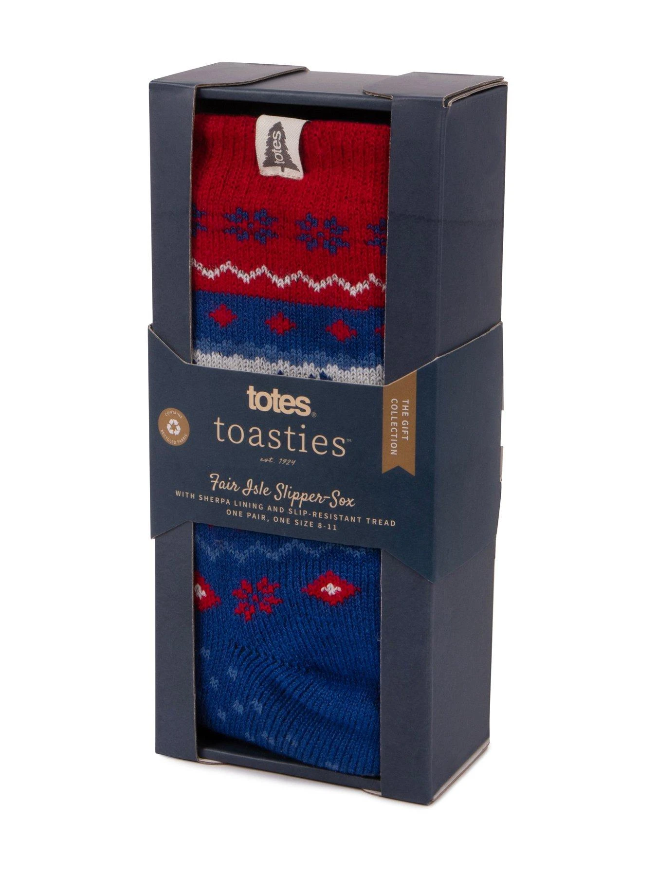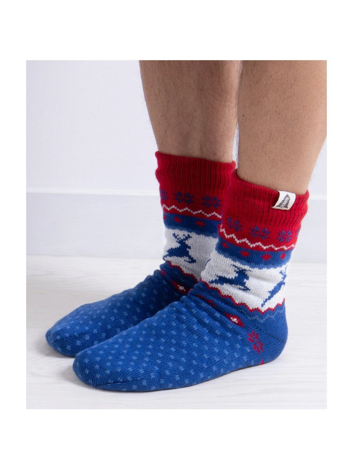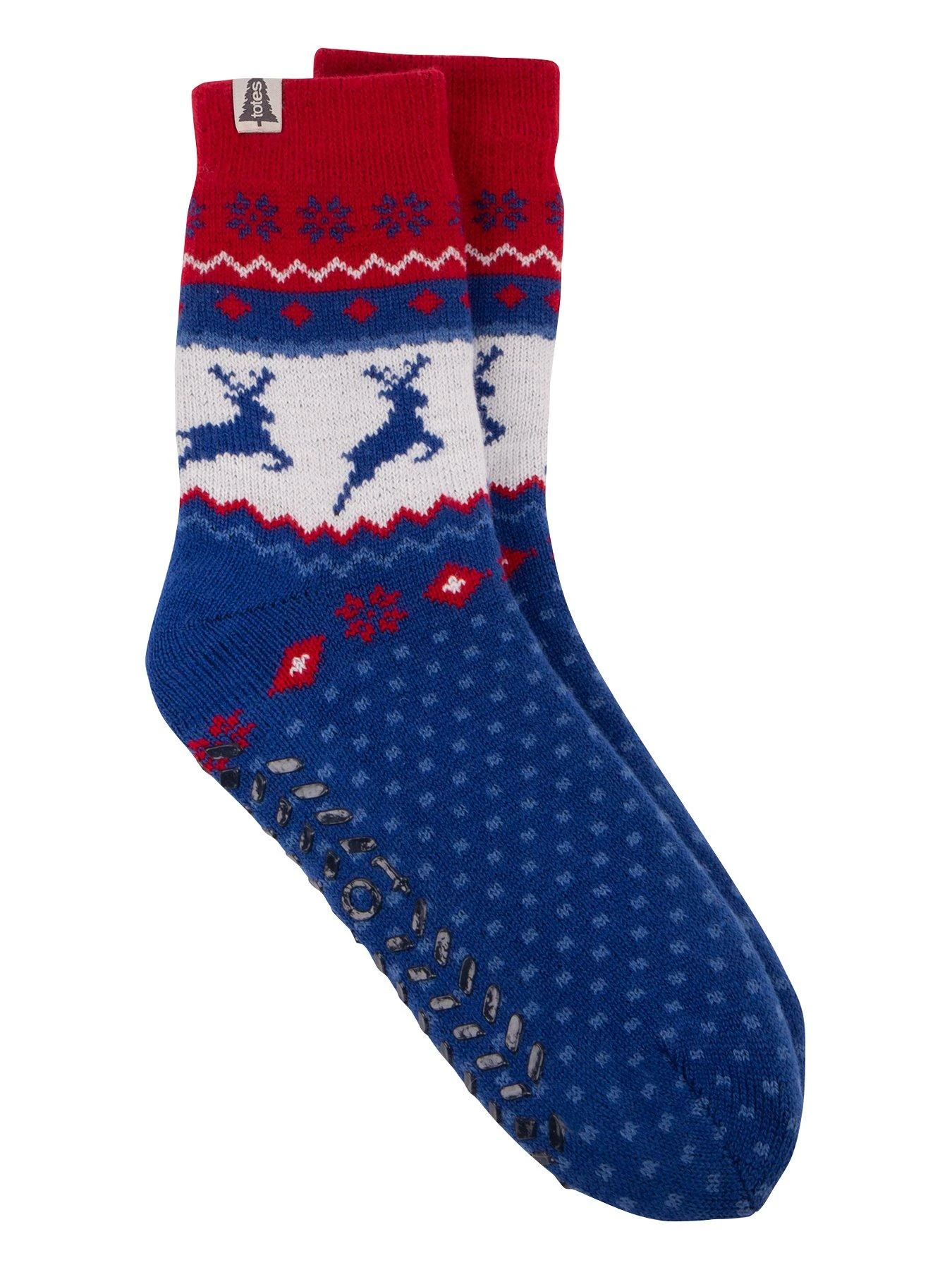 A great Christmas conversation starter! Cheerful Fair Isle style totes toasties slipper socks complete with prancing reindeer, scarlet snowflakes, cosy sherpa lining and slip-resistant tread. Tree present? Tick! Thermal brushed yarn. Contains recycled yarns. One size fits most. Beautifully packaged for the perfect gift.