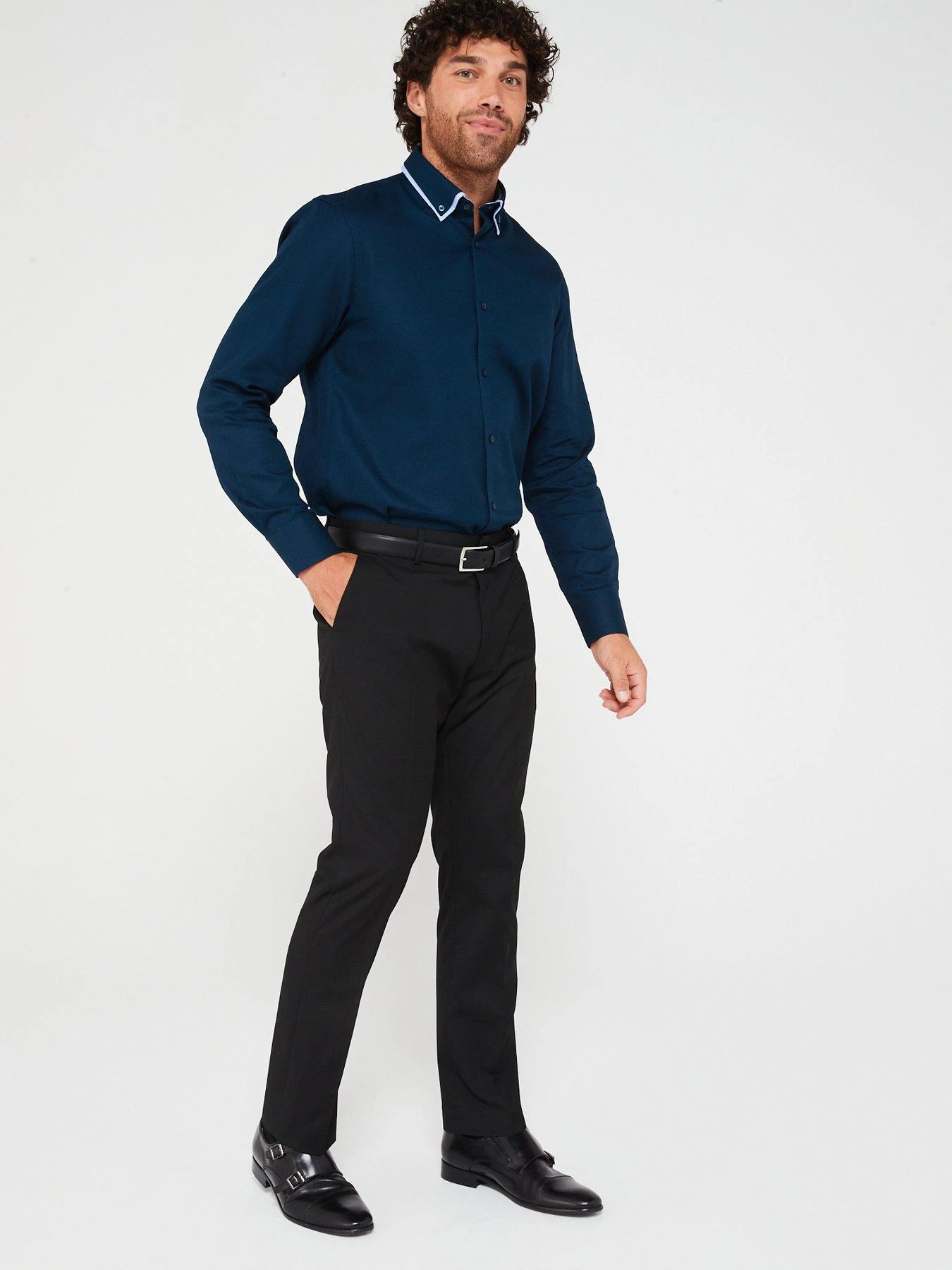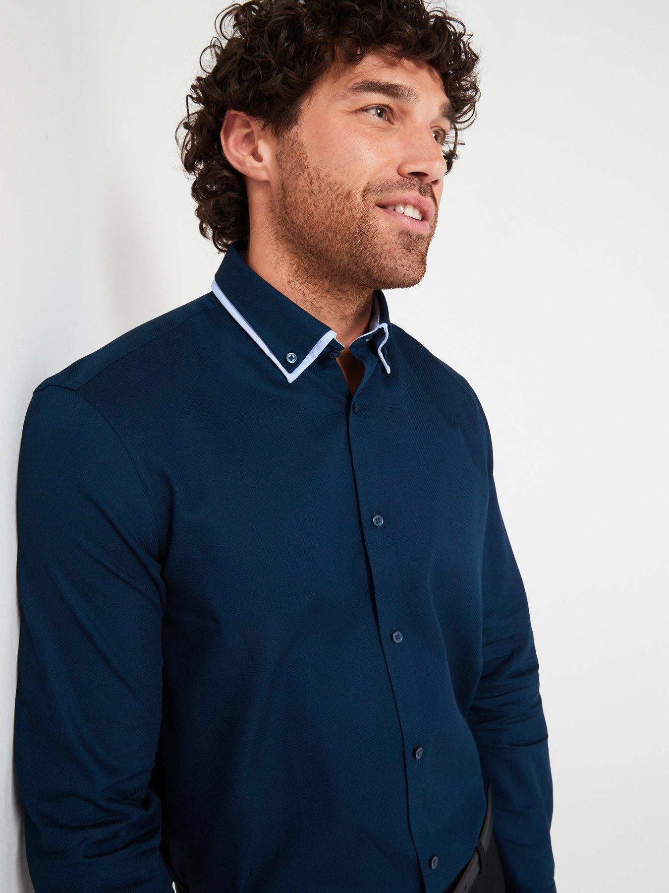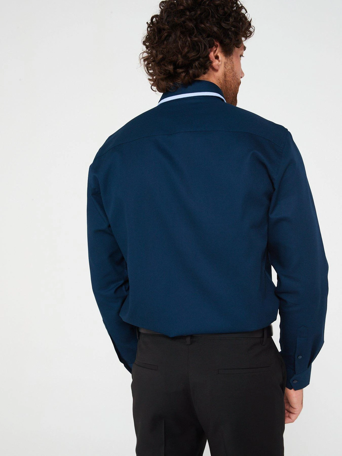 Very Man Formal Navy Textured Double Collar Shirt – Navy