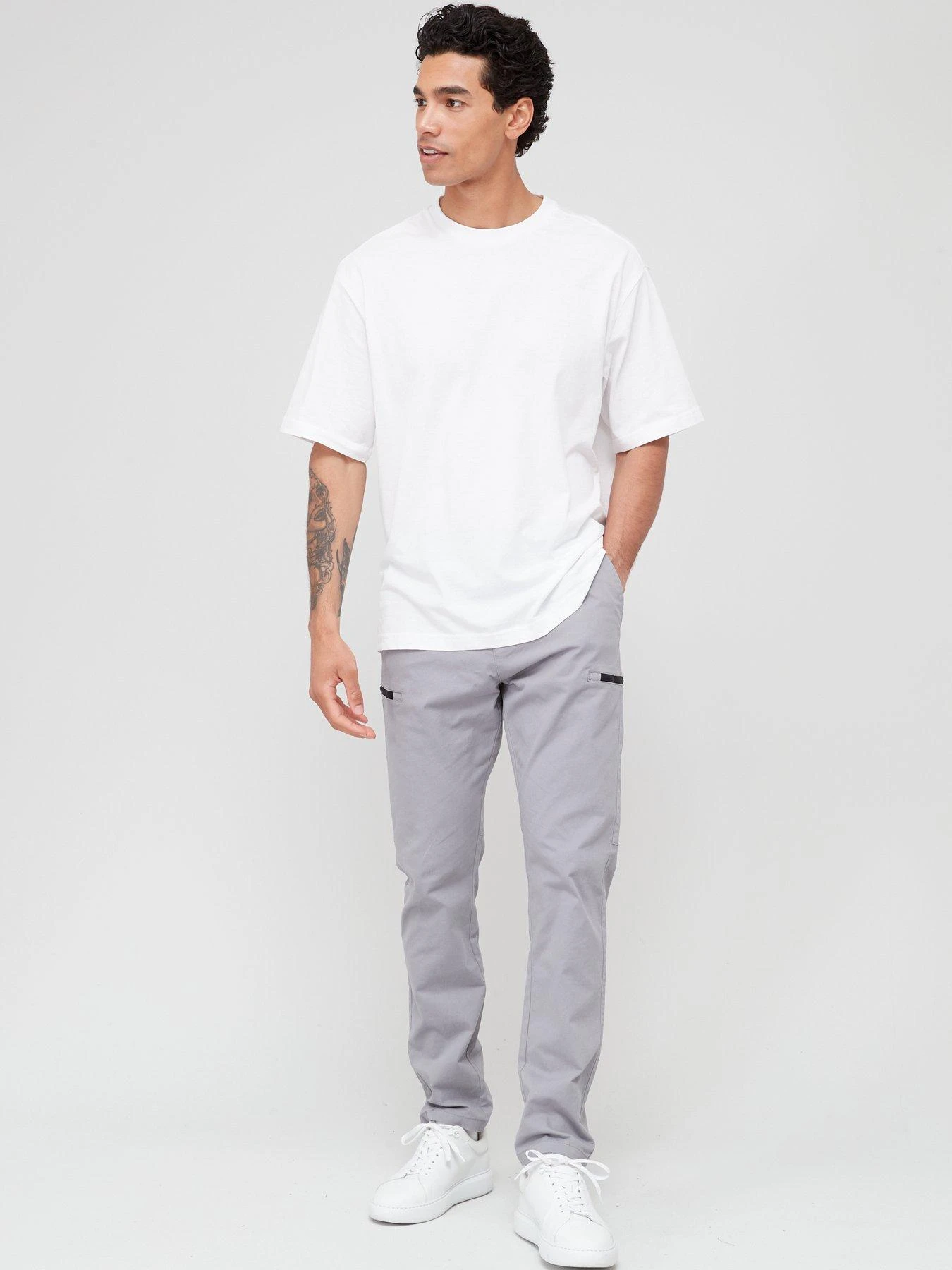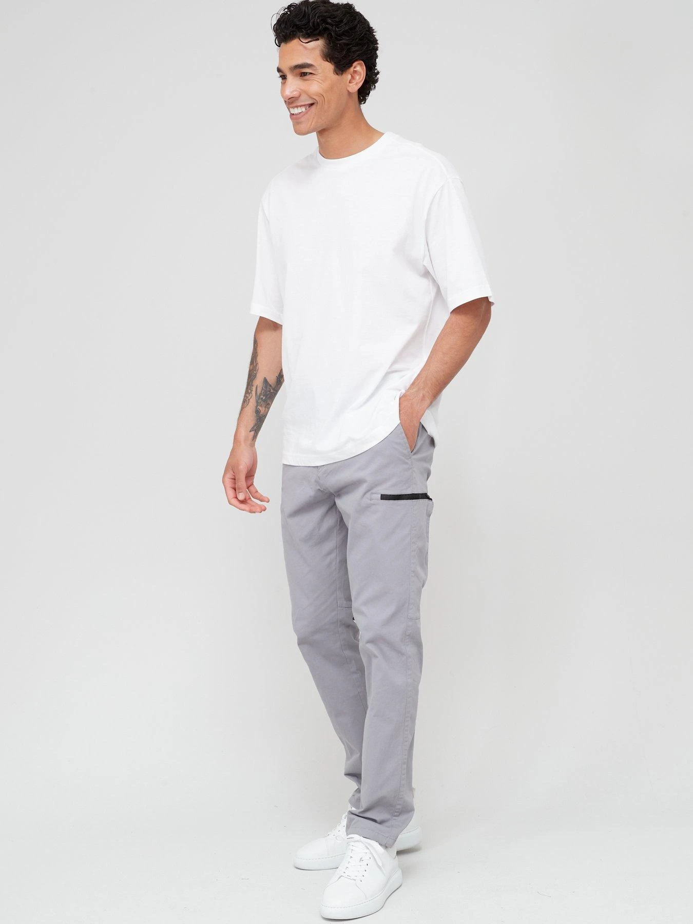 - Cut to a slim, tapered fit through the legs