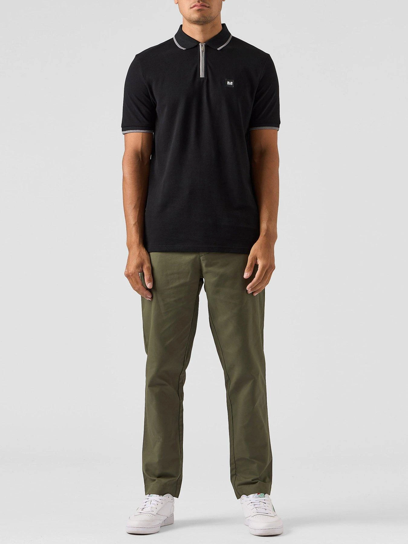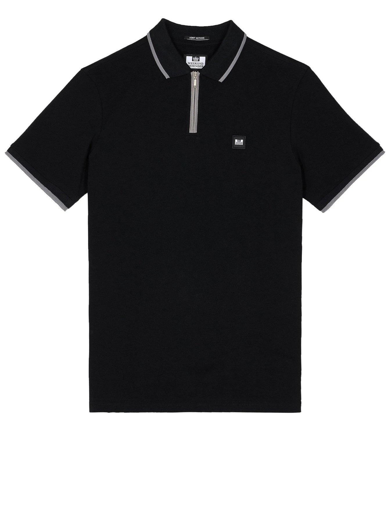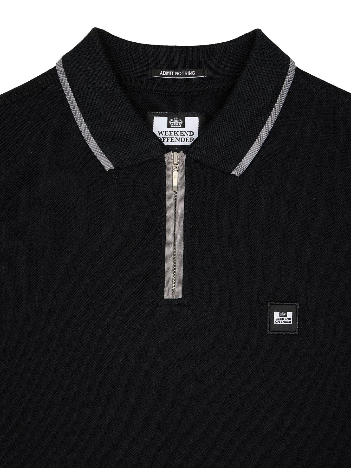 Weekend Offender Shore Zip Polo Shirt With Tipping – Black