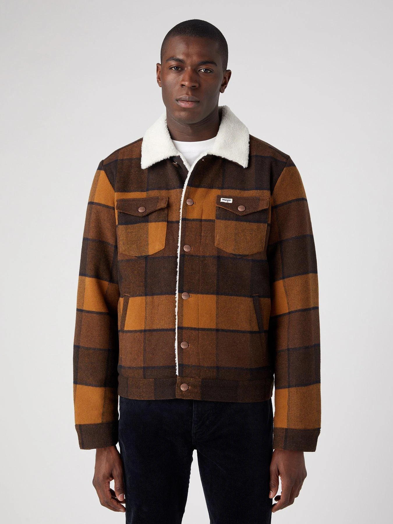 Wrangler Wool Blend Checked Trucker Jacket – Dark Yellow